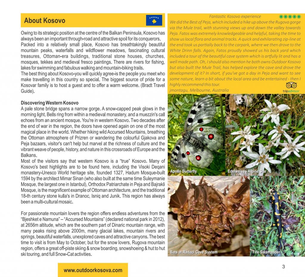Vandring i Balkan kan vara en inkörsport för mindre erfarna vandrare men också en utmaning för de mest erfarna klättrarna. Ta en tur med oss till glest bebodda och turistfria byar, dalar och bergstoppar. Njut av forsränning på de snabba floderna, simma i blå vattenfall och bergssjöar. Följ med på skidåkning, ridning, snösko-turer, fallskärmshoppning från bergstoppar, mountain-biking mm. och bli ett med den väl bevarade naturen i Balkan.